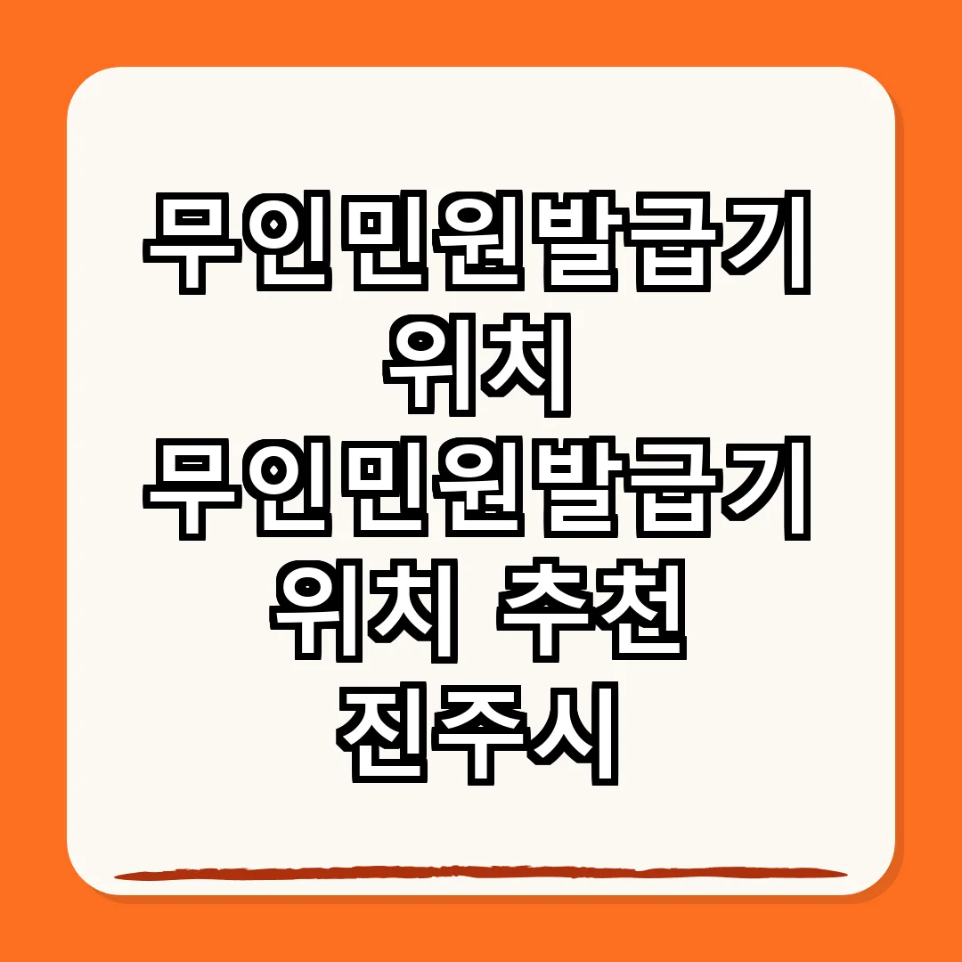진주시는 무인민원발급기를 통해 시민들의 편의를 도모하고 있으며, 이를 통해 필요한 서류를 빠르고 쉽게 발급받을 수 있습니다. 항상 운영 시간을 확인하고, 가까운 위치의 발급기를 이용하시기 바랍니다.