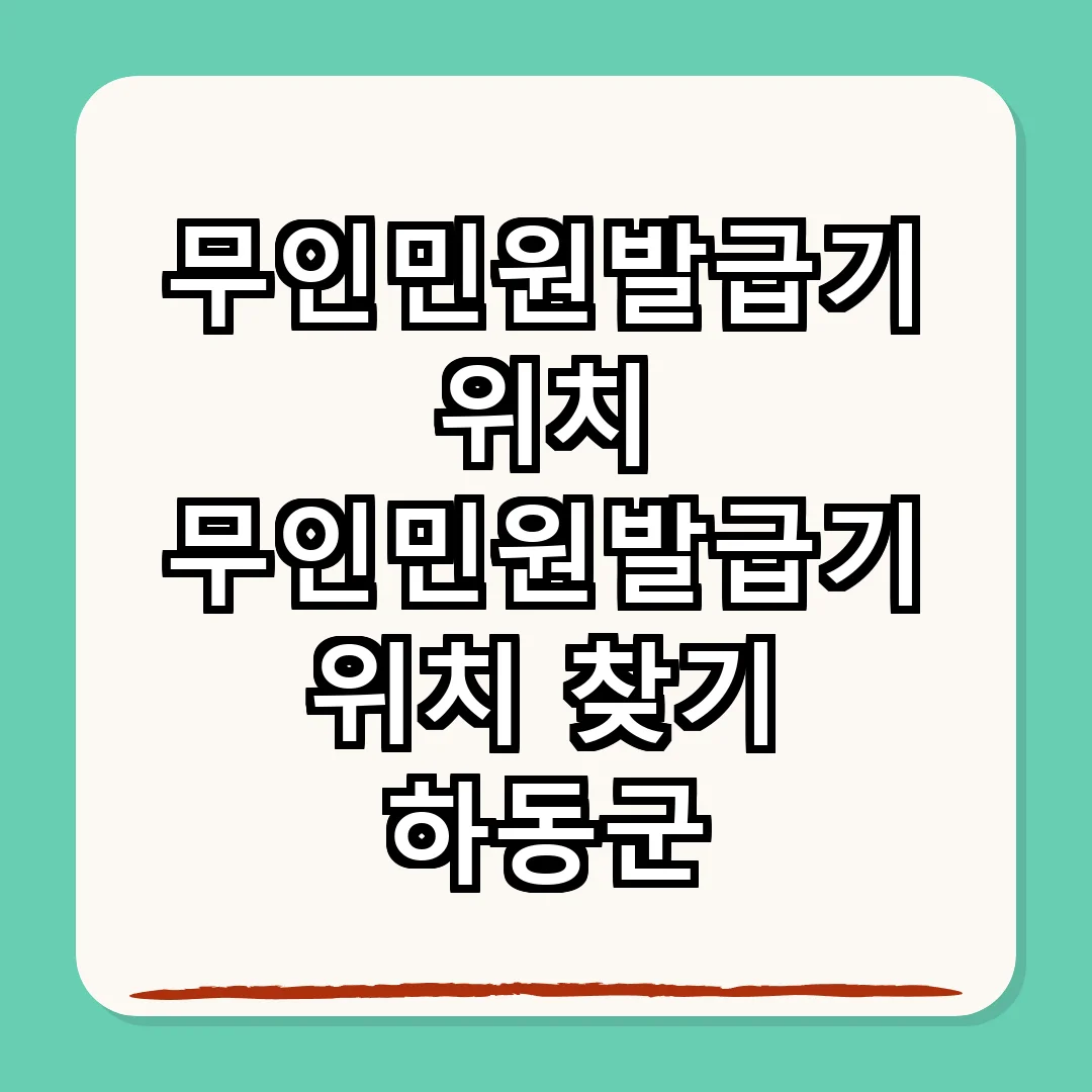 하동군 내에는 여러 군데에 무인민원발급기가 설치되어 있어 주민들이 필요할 때 쉽게 이용할 수 있습니다. 예를 들어, 하동군청, 주요 공공기관, 도서관 등의 장소에서 이 기계를 찾아볼 수 있습니다. 각 장소마다 운영 시간이 다를 수 있으니 사전에 확인하는 것이 좋습니다. 무인민원발급기를 이용하면 간편하게 서류를 발급받을 수 있으니, 필요할 때 미리 위치를 체크해두세요.