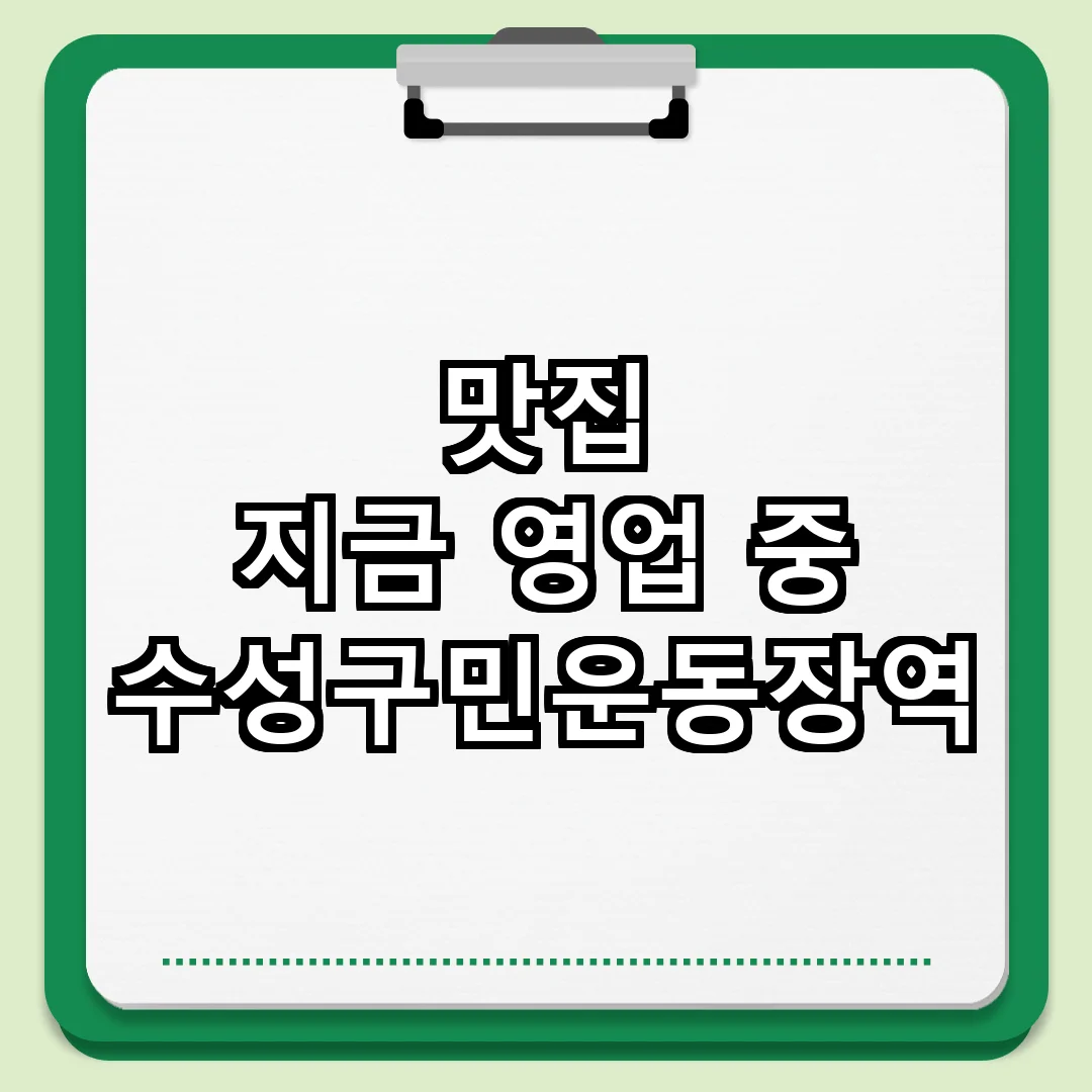 수성구민운동장역 인근에는 다양한 먹거리가 있어, 다양한 취향을 가진 사람들을 만족시킵니다. 특히, 지역 특산물을 활용한 메뉴도 많아, 맛과 함께 건강까지 챙길 수 있는 곳입니다.