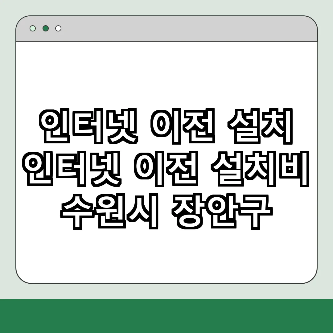 인터넷 이전 설치 비용은 통신사와 서비스 종류에 따라 다르며, 수원시 장안구의 경우 기본 설치비는 20,000원에서 50,000원 사이입니다. 셀프 설치를 선택하면 비용을 절감할 수 있습니다. 각 통신사에서는 셀프 설치를 권장하는 경우가 많으니, 이를 잘 활용하여 비용을 절감할 수 있습니다.